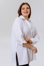 Льняная женская рубашка из коллекции SHLOMO: выполнена из приятного к телу льна, состав: 100% лён. Элегантная женская блузка - это идеальное сочетание стильного и практичного элемента гардероба. Блуза с длинным рукавом и свободным оверсайз кроем обеспечит комфорт в летние дни благодаря дышащему материалу. Прямой крой позволяет носить рубашку как заправленной, так и на выпуск, создавая разнообразные образы, которые подойдут для офиса, на работу, так и для повседневных прогулок. Станет идеальным вариантом как домашний пижамный комплект, прекрасно подойдет для беременных, он удобен для кормящих мам, так как не сковывает движения, подойдет как пляжная рубашка для пляжа, на море. Летняя широкая блуза легко сочетается с любым низом, например, с шортами и брюками из нашей коллекции SHLOMO. Изготовленная из высококачественной ткани, этот батник женский обеспечивает комфорт. Эта красивая блузка белого цвета станет идеальным дополнением к вашему гардеробу. Стиль позволяет использовать блузон как теплой весной, так и осенью, создавая объемный и бохо образ. Эта женская одежда подходит для любого размера и для полных женщин, подчеркивая вашу индивидуальность и добавляя нотку разнообразия в повседневные наряды. Натуральная льняная ткань очень легкая, тонкая и нежная на ощупь. Модная коллекция летней одежды из льна приятно удивит вас и подарит ощущение комфорта даже в самые жаркие дни. У нас собственное белорусское производство. Для нас важно качество наших изделий, поэтому мы выбрали именно лён. Льняные вещи славятся своим качеством и долговечностью. Ткань «дышит», за счет чего в жару в льняной одежде прохладно, а в холод она согревает. Она не электризуется, не вызывает аллергии, имеет антисептический эффект. Очень прочная, устойчива к истиранию, хорошо и достойно выглядит. Лён – это легко и естественно! • на изделиях из натурального льна встречаются утолщения нитей и мелкие узелки, что является особенностью переплетения ткани и не является браком