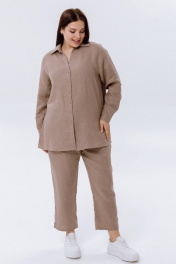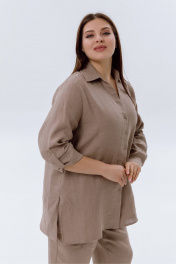 Льняная женская рубашка из коллекции SHLOMO: выполнена из приятного к телу льна, состав: 100% лён. Элегантная женская блузка - это идеальное сочетание стильного и практичного элемента гардероба. Блуза с длинным рукавом и свободным оверсайз кроем обеспечит комфорт в летние дни благодаря дышащему материалу. Прямой крой позволяет носить рубашку как заправленной, так и на выпуск, создавая разнообразные образы, которые подойдут для офиса, на работу, так и для повседневных прогулок. Станет идеальным вариантом как домашний пижамный комплект, прекрасно подойдет для беременных, он удобен для кормящих мам, так как не сковывает движения, подойдет как пляжная рубашка для пляжа, на море. Летняя широкая блуза легко сочетается с любым низом, например, с шортами и брюками из нашей коллекции SHLOMO. Изготовленная из высококачественной ткани, этот батник женский обеспечивает комфорт. Эта красивая блузка в бежевого цвета станет идеальным дополнением к вашему гардеробу. Стиль позволяет использовать блузон как теплой весной, так и осенью, создавая объемный и бохо образ. Эта женская одежда подходит для любого размера и для полных женщин, подчеркивая вашу индивидуальность и добавляя нотку разнообразия в повседневные наряды. Натуральная льняная ткань очень легкая, тонкая и нежная на ощупь. Модная коллекция летней одежды из льна приятно удивит вас и подарит ощущение комфорта даже в самые жаркие дни. У нас собственное белорусское производство. Для нас важно качество наших изделий, поэтому мы выбрали именно лён. Льняные вещи славятся своим качеством и долговечностью. Ткань «дышит», за счет чего в жару в льняной одежде прохладно, а в холод она согревает. Она не электризуется, не вызывает аллергии, имеет антисептический эффект. Очень прочная, устойчива к истиранию, хорошо и достойно выглядит. Лён – это легко и естественно! • на изделиях из натурального льна встречаются утолщения нитей и мелкие узелки, что является особенностью переплетения ткани и не является браком