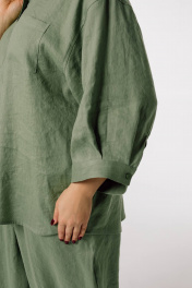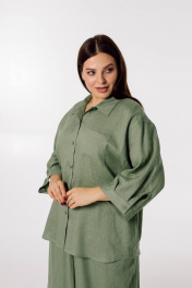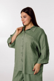 Льняная женская рубашка из коллекции SHLOMO выполнена из приятного к телу льна, состав: лён 65%, вискоза 35%. Стильная блузка с длинным рукавом и свободным оверсайз кроем обеспечит комфорт в жаркие летние дни благодаря дышащему материалу. Прямой крой позволяет носить рубашку как заправленной, так и на выпуск, создавая разнообразные образы, которые подойдут для офиса, на работу, так и для повседневных прогулок. Станет идеальным вариантом как домашний пижамный комплект, прекрасно подойдет для беременных, так как не сковывает движения, подойдет как пляжная рубашка для пляжа, на море, на океан. Удлиненные женские блузки больших размеров, такие как эта, обеспечивают комфорт и свободу движений, а однотонный цвет делает рубашку базовой. Батник женский добавляет элегантности и индивидуальность образу. Летняя широкая блуза легко сочетается с любым низом, например, с брюками из нашей коллекции. Универсальная модель подходит женщинам любого возраста и станет отличным подарком для близких. Эта Красивая блузка в хаки цвете станет идеальным дополнением к вашему гардеробу. Стиль позволяет использовать блузон как жарким летом, теплой весной, так и осенью, создавая объемный и бохо образ. Натуральная льняная ткань от бренда SHLOMO очень легкая, тонкая и нежная на ощупь. Модная коллекция летней одежды из льна приятно удивит вас и подарит ощущение комфорта даже в самые жаркие дни. У нас собственное белорусское производство. Для нас важно качество наших изделий, поэтому мы выбрали именно лён. Льняные вещи славятся своим качеством и долговечностью. Ткань «дышит», за счет чего в жару в льняной одежде прохладно, а в холод она согревает. Она не электризуется, не вызывает аллергии, имеет антисептический эффект. Очень прочная, устойчива к истиранию, хорошо и достойно выглядит. Лён – это легко и естественно! • на изделиях из натурального льна встречаются утолщения нитей и мелкие узелки, что является особенностью переплетения ткани и не является браком.