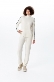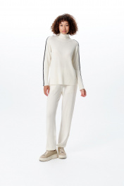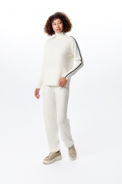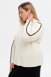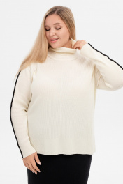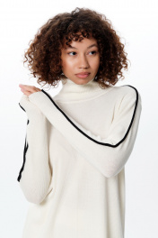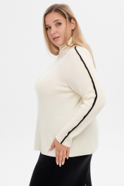 Свитер связан из качественной итальянской пряжи, в составе 50 % Кашемир и 50 % Меринос. Классическая фактура, шелковистая и мягкая, не колется и приятна тактильно. Удобный ворот – стойка на мягкий отворот, длинный рукав подчеркнут кантом, комфортная прямая свободная форма. Свитер прекрасно сочетается с брюками мод. 10791, создавая динамичный образ. Предлагается большой размерный ряд с 44 по 54 размер. Длина джемпера от плеча 63 см. Рекомендуется химчистка, а также возможна ручная стирка 30 градусов или машинная в режиме Деликатная \ Шерсть.