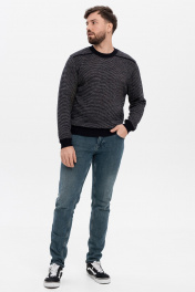 Джемпер из шерсти Меринос с полосками и однотонной отделкой AREOLA 10960 т.синий/меланж
