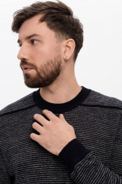 Мужской джемпер выполнен из 100% Меринос шерстяной пряжи из Италии. Классическая форма с круглым вырезом представлена в сочетании тонких полосок меланжа с однотонной отделкой по низу и канту в зоне плеч. Предлагается в трех цветосочетаниях, в диапазоне размеров 48 – 56 в росте 182. Длина джемпера от плеча 70 см. Изделие из шерсти не колется, не усаживается, требует бережного ухода. Рекомендуется химчистка, а также ручная стирка или машинная в режиме Шерсть.