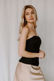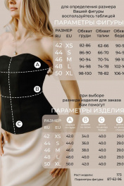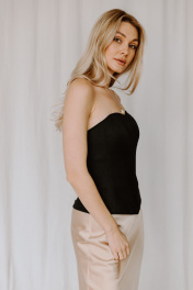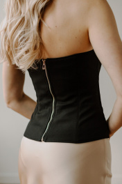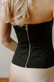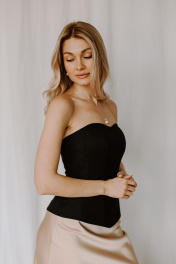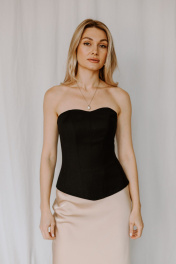 Женский топ корсетного типа — это стильная одежда для создания эффектного образа. Косточки в швах помогают сохранить форму и поддерживать бюст, делая посадку максимально комфортной. Плотно обтягивать фигуру помогает застежка-молния по спинке, что подчеркнет талию. Черный цвет добавляет изысканности, а эксклюзивный крой подчеркивает индивидуальность обладательницы. Топ корсет можно носить как самостоятельную вещь или сочетать с пиджаком, юбкой, брюками, рубашкой. Чашечка выполнена так, чтобы обеспечить комфорт даже при длительной носке. Корсетный топ выполнен в черном цвете, который легко комбинируется с разными стилями одежды. Эксклюзивный дизайн подчеркнет вашу индивидуальность, а плотная посадка придаст сексуальности любому наряду. Такой женский топ станет отличным выбором для создания праздничного или вечернего образа. Данная модель топа корсета подойдет тем, кто ценит свободу движений и стильные решения в гардеробе.