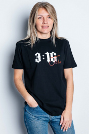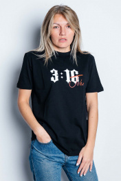 Джемпер женский с коротким рукавом классического кроя. Принт - флексография "John 3:16/ Иоанн 3:16". Ткань кулирная гладь , качество Пенье. - Только деликатная стирка 30 градусов - Не использовать отбеливатели - Изделие вывернуть наизнанку