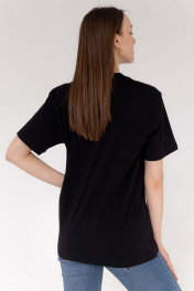 Черная футболка с цитатой и классическим кроем из хлопка MariSt 21005 черный