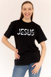 Джемпер женский с коротким рукавом классического кроя. Принт - флексография "Jesus the way the truth the life"/"Иисус путь, истина и жизнь". Ткань кулирная гладь , качество Пенье. - Только деликатная стирка 30 градусов - Не использовать отбеливатели - Изделие вывернуть наизнанку