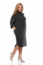 Платье оверсайз из трикотажа с нагрудными вытачками и воротником Abbi 1040 темно-серый