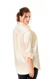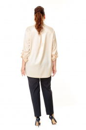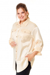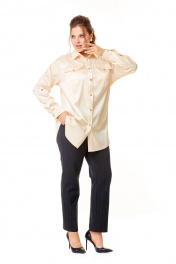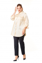 Стильная женская рубашка-блуза оверсайз в светлобежевых оттенках из высококачественного русского атласа станет прекрасным дополнением вашего гардероба. Свободный крой и классический воротник придают образу элегантность и женственность. Застёжка спереди на петли и оригинальные пуговицы добавляет шарма и делает рубашку ещё более привлекательной. Карманчики с клапанами на передних половинках рубашки также застёгиваются на пуговицы, обеспечивая удобство и функциональность. Рукава дношовные полуспущенные с манжетами внизу и застёжкой на пуговицы позволяют экспериментировать с образом, добавляя оригинальности и неповторимости. Паты в рукавах дают возможносьносить рубашку разными способами, что делает её ещё более универсальной. Притачная кокетка на передних половинках и спинке рубашки подчёркивает изящество и изысканность обладательницы этого стильного предмета гардероба. Сборка по центру спинки кокетки акцентирует внимание на утончённости и элегантности женщины, которая носит эту рубашку. В образе с рубашкой для фотосъемки мы использовали брюки нашего бренда с артикулом 2013. Фотомодель на фотографиях ростом 172 сантиметра, с обхватом груди – 102, талии – 85, бедер – 113 см. Размер – 52 (как и размер рубашки на фото). Точные замеры в каждом размере блузы и маек прилагаются к описанию ниже. Ссылка на видеоролик с женской одеждой нашего бренда на нашем канале: https://www.youtube.com/watch?v=fDWkme2TyOQ https://www.youtube.com/@AbbiClothes Фактические замеры изделий (в готовом виде), в которых: ОГ – обхват груди; ОТ – обхват талии; ОБ – обхват бедер; ДИ – длина изделий (по спинке); ДР – длина рукава (от выреза горловины/от плечевого шва); ШП – ширина по плечикам/по спинке в области лопаток. Рост фотомодели – 172 см, размер фотомодели – 52. Размер 48 ОГ – 112; ОТ – 112; ОБ – 116; ДИ – 82; ДР – 78/57; ШП – 47/45 Размер 50 ОГ – 116; ОТ – 116; ОБ – 120; ДИ – 83; ДР – 78/57; ШП – 49/47 Размер 52 ОГ – 120; ОТ – 120; ОБ – 124; ДИ – 85; ДР – 80/58; ШП – 50/48 Размер 54 ОГ – 124; ОТ – 124; ОБ – 128; ДИ – 86; ДР – 81/58; ШП – 51/49 Размер 56 ОГ – 128; ОТ – 128; ОБ – 132; ДИ – 87; ДР – 81/58; ШП – 51/49 Размер 58 ОГ – 132; ОТ – 132; ОБ – 136; ДИ – 88; ДР – 81/58; ШП – 52/50 Размер 58 ОГ – 132; ОТ – 132; ОБ – 136; ДИ – 89; ДР – 81/58; ШП – 52/50 Размер 60 ОГ – 136; ОТ – 136; ОБ – 140; ДИ – 90; ДР – 81/58; ШП – 55/53 Размер 62 ОГ – 140; ОТ – 140; ОБ – 144; ДИ – 91; ДР – 82/57; ШП – 56/54 Размер 64 ОГ – 144; ОТ – 144; ОБ – 148; ДИ – 92; ДР – 83/57; ШП – 58/56
