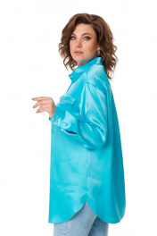 Стильная женская рубашка-блуза оверсайз из высококачественного русского атласа бирюзовых тонов станет прекрасным дополнением вашего гардероба. Свободный крой и классический воротник придают образу элегантность и женственность. Застёжка по переду на петли и оригинальные пуговицы с имитацией дерева добавляет шарма и делает рубашку ещё более привлекательной. Карманчики с клапанами напередних половинках рубашки также застёгиваются на пуговицы, обеспечивая удобство и функциональность. Рукава одношовные полуспущенные с манжетами внизу и застёжкой на пуговицы позволяют экспериментировать с образом, добавляя оригинальности и неповторимости. Паты в рукавах дают возможность носить рубашку разными способами, что делает её ещё более универсальной. Притачная кокетка на передних половинках и спинке рубашки подчёркивает изящество и изысканность обладательницы этого стильного предмета гардероба. Сборка по центру спинки кокетки акцентирует внимание на утончённости и элегантности женщины, которая носит эту рубашку. В образе с рубашкой для фотосъемки мы использовали брюки нашего бренда с артикулом 2013. Фотомодель на фотографиях ростом 172 сантиметра, с обхватом груди – 102, талии – 85, бедер – 113 см. Размер – 52 (как и размер рубашки на фото). Точные замеры в каждом размере блузы и маек прилагаются к описанию ниже. Фактические замеры изделий (в готовом виде), в которых: ОГ – обхват груди; ОТ – обхват талии; ОБ – обхват бедер; ДИ – длина изделий (по спинке); ДР – длина рукава (от выреза горловины/от плечевого шва); ШП – ширина по плечикам/по спинке в области лопаток. Рост фотомодели – 172 см, размер фотомодели – 52. Размер 48 ОГ – 112; ОТ – 112; ОБ – 116; ДИ – 82; ДР – 78/57; ШП – 47/45 Размер 50 ОГ – 116; ОТ – 116; ОБ – 120; ДИ – 83; ДР – 78/57; ШП – 49/47 Размер 52 ОГ – 120; ОТ – 120; ОБ – 124; ДИ – 85; ДР – 80/58; ШП – 50/48 Размер 54 ОГ – 124; ОТ – 124; ОБ – 128; ДИ – 86; ДР – 81/58; ШП – 51/49 Размер 56 ОГ – 128; ОТ – 128; ОБ – 132; ДИ – 87; ДР – 81/58; ШП – 51/49 Размер 58 ОГ – 132; ОТ – 132; ОБ – 136; ДИ – 88; ДР – 81/58; ШП – 52/50 Размер 58 ОГ – 132; ОТ – 132; ОБ – 136; ДИ – 89; ДР – 81/58; ШП – 52/50 Размер 60 ОГ – 136; ОТ – 136; ОБ – 140; ДИ – 90; ДР – 81/58; ШП – 55/53
