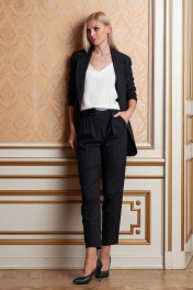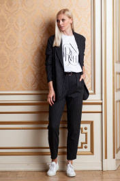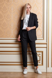 Черный жакет из текстиля, деловой стиль, демисезон Achosa 191 черная полоска