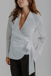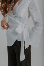 Блузка на запах с длинным рукавом — это универсальный элемент женской одежды, который гармонично сочетается с различными стилями и подходит для любого сезона: весна, летний период или осень. Благодаря оригинальному крою эта блуза прекрасно подчеркивает женственный силуэт, делая образ элегантным и стильным. Приталенный фасон визуально вытягивает фигуру, а удлиненный клеш рукав добавляет легкости классическому образу. Однотонный цвет обеспечивает универсальность изделия, позволяя использовать его как в повседневном, так и в деловом стиле. Легкий хлопковый материал делает одежду приятной к телу. Блуза отлично впишется в гардероб современной женщины благодаря своему универсальному характеру — она подходит для офисного будня, праздничного события или даже торжественного вечера. Для летнего периода натуральная ткань обеспечит свежесть даже в жаркие дни. Каждый размер легко адаптируется под особенности фигуры за счет регулируемой завязки.