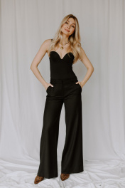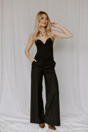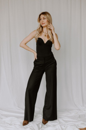 Брюки палаццо классические с застежкой на гульфик созданы для женщин, которые ценят стиль и удобство в любой ситуации. Изделие выполнено из качественной ткани с добавлением полиэстера, вискозы и спандекса — такой состав обеспечивает приятную на ощупь фактуру, легкость ухода и плотный крой. Свободный прямой силуэт труба дарит комфорт в движении, а немного завышенная талия визуально удлиняет ноги и формирует женственный образ. Благодаря лаконичной молнии и продуманной застежке на гульфик посадка получается безупречной — штаны не только красиво смотрятся, но и удобно сидят по фигуре. Классический крой сочетается с нарядными аксессуарами, высоким каблуком либо лаконичной обувью на плоской подошве. Посадка по талии остается стабильной благодаря продуманному поясу — изделие не сползает даже при активном движении.