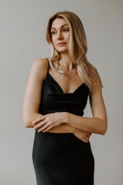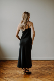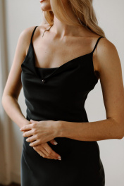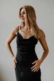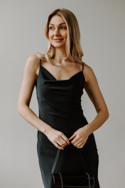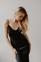 Платье комбинация на бретельках от AEQU сочетает в себе изящество и актуальные тренды для создания неповторимого вечернего и праздничного образа. Благодаря шелковой фактуре платье выглядит дорого и элегантно, обеспечивая приятную легкость в движении и нежность на коже. Открытые плечи и аккуратные бретели мягко подчеркивают женственность, а глубокий вырез "качели" на груди добавляет нотку привлекательности и подчеркивает силуэт. Черный вариант всегда остается в центре внимания, позволяя создать яркий и стильный образ. Приталенный фасон и облегченная структура ткани выгодно подчеркивают все достоинства фигуры и делают образ легким и свежим. Благодаря регулировке бретелей по высоте и точной посадке, изделие комфортно сидит и подходит для различных типов фигуры, а вшитый утяжелитель в вырезе позволяет зафиксировать его в идеальном положении. Акцент на тонких лямках и вырезе "качели" придает комбинации воздушность, позволяет экспериментировать со стилем создавая модные образы и формировать идеальный праздничный наряд для особых случаев. Если вы желаете добавить своему гардеробу особый атласный шик, то платье комбинация с бретелями будет актуальным решением. Платье комбинации от белорусского бренда AEQU позволит каждой женщине почувствовать себя изысканно и утонченно.