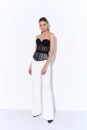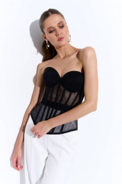 Удлиненный корсет из сетки с фигурной линией низа. Чашки на поролоне с косточками. Застежка на шнуровку. Корсет – яркий тренд нынешнего сезона. Корсет отлично подойдет для коктейльных выходов, при этом его легко вписать в повседневные образы, сочетая с джинсами и брюками-карго. Корсет можно использовать, как самостоятельный предмет одежды либо, как аксессуар, надевая вторым слоем поверх рубашек или платьев.