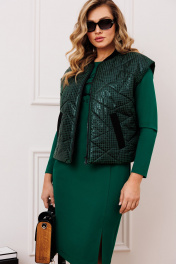 Стильный женский комплект двойка, состоит из жилета и платья. Жилет выполнен из стёганной ткани с модным принтом в гусиную лапку, полностью на подкладке. Жилет с застежкой по переду на молнию и функциональными карманами, отделкой из довяза черного на карманах и горловине. Платье полуприлегающего силуэта, выполнено из трикотажной ткани с добавлением вискозы, по переду декорировано стильной дизайнерской печатью. По спинке платья потайная молния застежка, по переду два разреза.