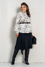 Бежевая блузка из текстиля с контрастным принтом Aira Style 24-054 бежево-черный
