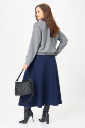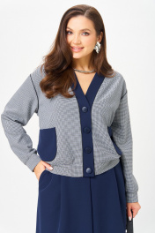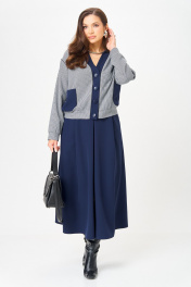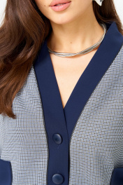 Этот костюм — воплощение интеллектуальной элегантности. Мягкий светло-серый кардиган с коричневыми кантами и крупными пуговицами создаёт образ уютного шарма. V-образный вырез визуально вытягивает шею, а контрастные детали подчёркивают чёткость линий. Рукав на спущенной плойме с манжетой по низу. По перду накладные карманы с декоративной нашивкой. Коричневая юбка миди с глубокими встречными складками и разрезом по переду добавляет образу женственности. В боковых швах карманы. Юбка на подкладке. Для максимально комфортной посадки по бокам пояса вставлена эластичная резинка. Сочетание мягкого верха и строгого низа создаёт баланс между комфортом и аккуратностью, делая комплект универсальным для офиса, повседневных выходов и стильных деловых встреч.