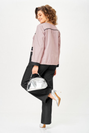 Костюм в стиле спорт-шик сочетающий в себе женственность и комфорт. Сочетание двух тканей трикотажного полотна и костюмной ткани добавляет оригинальность. Жакет со спущеным плечем и декорирован печатью по левой части переда, воротник пиджачного типа. По линии плеча паты с полукольцом. Рукав втачной одношовный с манжетой по низу. Спинка с кокеткой и отлетной планкой. Понизу довяз и регулируемая кулиса. Брюки, слегка зауженные к низу, свободного силуэта. По переду вблизи боковых швов карманы. Для максимально комфортной посадки по поясу вставлена эластичная резинка.