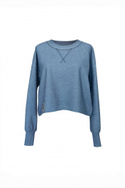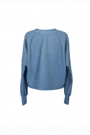 Джемпер женский, из трикотажного полотна, прямого силуэта, короткий. Перед цельнокроеный с передней частью рукава. Спинка цельновыкроенная с локтевой частью рукава. Рукава цельновыкроенные, с отрезной частью, длинные с притачными манжетами. Горловина переда и спинки круглая, с притачной бейкой.