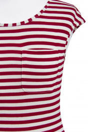 Блузка женская из трикотажного полотна, прямого силуэта, со спущенной линией плеча. Перед с накладным карманом. Горловина переда и спинки круглая, горловина и пройма переда и спинки окантована.