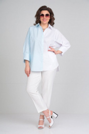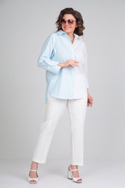 Белая и голубая рубашка с застежкой спереди и сзади ALEZA 1130 бело-голубой
