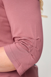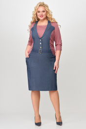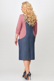 Платье полуприлегающего силуэта в сочетании из двух видов ткани: джинсовой и вискозы, отлично подойдет как в офис, так и на выход. Модель длиной чуть ниже колена. Перед очень красиво разбит на детали и представляет собой имитацию сарафана с нежным отложным воротничком пиджачного типа. По кокеткам отстрочены защипы, по центральной детали - сборка. Чуть ниже талии - декоративный втачной ремень, а также платье с имитацией застежки на 3 металлические пуговки. По переду обработаны удобные и функциональные карманы. Спинка со средним швом и бочками закругленной формы. Рукава втачные, длиной ¾, одношовные. По рукаву внизу заложены 3 небольшие складочки. Материал не тонкий и не толстый, не мнется, скрывает все особенности фигуры. Длина изделия - 106 Длина рукава - 48