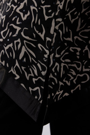 Мягкий, красивый стильный и очень комфортный женский костюм большого размера, состоящий из блузы и брюк прямого силуэта. Брюки выполнены из костюмно-плательной ткани, пояс на резинке. Блуза выполнена из шифона на трикотажной подкладке. Блуза сложного геометрического кроя с удлиненным боковым швом и разрезом. Низ изделия обработан отделочной тканью. Рукава длиной чуть ниже локтя. Необычное дизайнерское решение на стыке безупречной женственности и стиля с динамикой и новаторством подчеркнет изысканный вкус обладательницы, не лишив комфорта и функциональности. Подойдет как офисная одежда, вечерний наряд, а также как праздничный или для вечернего выхода. В больших размерах легкий оверсайз.Блуза асимметричного кроя.Длина по центру - 78 см; по правому боковому шву от проймы до низа - 42 см; по левому боковому шву - 65 см. Длина брюк - 105 Длина блузы - 78 (по центру)