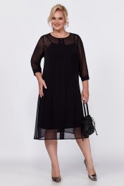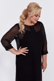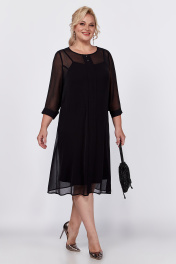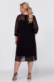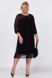 Универсальное, элегантное черное платье с рукавом длиной ¾ на манжете и отдельным подкладом поможет Вам в создании абсолютно разных образов. Платье имеет классический прямой крой с бантовыми складками по переду и по спинке, которые добавляют романтичность и элегантность. Платье подойдет как высоким, так и невысоким женщинам, благодаря своей миди длине. Верхнее платье выполнено из шифона, горловина декорирована пуговицами. Нижнее платье на бретелях пошито из ткани "масло". Это платье Вы можете легко использовать как платье вечернее, как платье для прогулки или на свидание, на день рождения или клуб, для фотосессии или романтического вечера. Длина изделия - 106 Длина рукава - 47