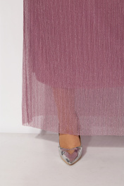 Нарядное платье больших размеров полуприталенного силуэта выполнено из плиссированной ткани, поставлено на трикотажную подкладку. На полочке обработаны подрезы, горловина изделия – декольте на запах. Платье больших размеров изготовлено из легкой, дышащей ткани, которая не скатывается, не теряет форму и цвет даже после многочисленных стирок. На спинке по среднему шву обработана потайная застежка на молнии. Рукав длиной чуть ниже локтя. Полуприталенное, коктейльное, нарядное платье подойдет на любой случай: на свадьбу, на торжество, на корпоратив, на юбилей, на день рождения, для мамы на выпускной вечер подростков, особо актуально для мам невест, для мам женихов в любое время года. Длина изделия - 144 Длина рукава - 48