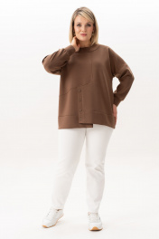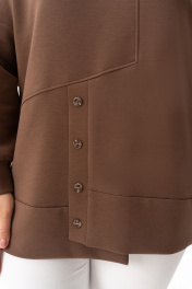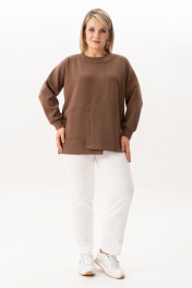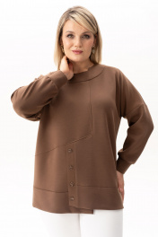 Позвольте себе насладиться комфортом и стилем с нашей туникой, которая станет вашим незаменимым спутником. Этот стильный свитшот предполагает легкость и свободу движений, что делает идеальным для повседневной носки и прогулок на свежем воздухе. Изготовленный из качественного трикотажа, он обеспечивает дышащие свойства и гипоаллергенность, что особенно важно для женщин с чувствительной кожей. Туника с круглой, асимметричной горловиной и манжетами на запястьях добавляет образу женственности и утонченности. На полочке обработана нефункциональная, декорированная пуговицами планка. На спинке, в среднем шве, обработана потайная молния.Она легко сочетается с различными аксессуарами,юбкой,брюками и разной обувью, что дает возможность создавать разнообразные образы. Длина рукава - 62 Длина блузы - 74
