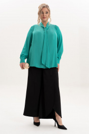 Прекрасная классическая блуза с воротником - бантом имеет прямой крой, поэтому отлично подходит для любого типа фигуры. Спинка со средним швом. По переду блузы есть рельефы от плечевого шва, в боковых швах - небольшие разрезы. Блуза изготовлена из приятной к телу ткани, гладкая фактура не мнётся и сохраняет свой первоначальный вид даже после многократных стирок. Рукав втачной, одношовный, длинный с манжетой на две петли и пуговицы. Комфортная модель для работы и просто для повседневного применения, так и к композиции нарядного ансамбля. Элегантная блуза с бантом - утончённая универсальность. Она гармонично дополнит Ваш гардероб, став незаменимым элементом на все случаи жизни. Гладкая фактура материала и длинные рукава добавляют элегантности и изысканности. Благодаря своему универсальному назначению, эта блуза подходит как для офисного стиля, так и для повседневного ношения, и в том числе на выход. Её однотонная структура и бескарманная конструкция делают блузу идеальным выбором для тех, кто ценит простоту и стиль. Длина изделия - 69 Длина рукава - 63