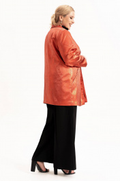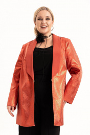 Этот женский нарядный жакет представлен в ярких тонах. Благодаря своему прямому, слегка приталенному силуэту, жакет обеспечивает максимальный комфорт и удобство при ношении. Вам не придется беспокоиться о чувстве стеснения или дискомфорта, так как он идеально подстраивается под вашу фигуру. Этот нарядный пиджак гарантированно привлечет внимание и подчеркнет вашу индивидуальность. Он доступен в больших размерах и подходит для женщин с разными типами фигуры. Вы сможете выглядеть модно и элегантно независимо от своего размера. На жакете обработан воротник шалька и карманы в фигурных рельефах. Жакет на подкладке с длинным рукавом. Застежка на декоративный крючок. Длина изделия - 80 Длина рукава - 62