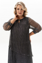 Это итальянское платье- имитация костюма  нарядного стиля больших размеров станет отличным выбором для тех, кто ценит элегантность и стиль. Платье сочетает в себе комфорт и долговечность. Ткань "плиссе" придает изделию оригинальную рельефную текстуру, которая делает его особенно привлекательным. Основная особенность этого платья — силуэт в виде трапеции, который подходит для разных типов фигур, а также каплевидный декор по горловине полочки. Длина юбки — миди. Платье предназначено для женщин плюс сайз и станет идеальным выбором для вечерних мероприятий, новогодних праздников, свадеб или юбилеев. Благодаря универсальному дизайну ее можно сочетать с различными нарядами. Это отличный подарок для жены, мамы, сестры или девушки. Платье украшено брошей-цветком и съемным поясом, которая добавляет элегантности и шарма, и ее можно заменить на другие аксессуары, адаптируя наряд под разные события и настроения. Легкая трикотажная подкладка делает его еще более комфортным, а рукава 3/4 и рубашечный манжет с застежкой на петлю и пуговицу  делают платье подходящим для большинства женщин. Выбирая это  платье  больших размеров  , Вы получаете не только стильное и элегантное платье, но и качественное удобное изделие, которое скрывает все неровности фигуры и  будет Вашим верным спутником на любых праздниках . Длина изделия - 118 Длина рукава - 54
