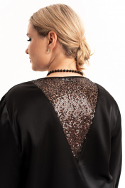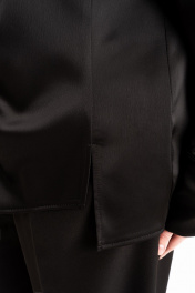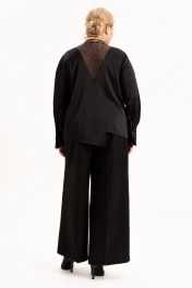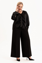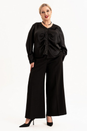 Элегантный женский брючный костюм — настоящая находка для тех, кто ищет идеальный образ на праздник, свадьбу или важный вечер. Классический крой и свободные брюки палаццо подчёркивают достоинства фигуры и дарят комфорт. Нарядный и вечерний стиль — безупречно смотрится на большом мероприятии, создавая образ, полный уверенности и шарма. Блуза выполнена из шелковистой ткани с приятной фактурой. Блузка с длинными струящимися рукавами выглядит очень изящно и очаровательно. Блузка без воротника, застежка на петли и пуговицы по планке, с V – образным вырезом горловины. Спинка с декоративным элементом из паеток. По переду вдоль планок заложены складки и обработан кант из паеток. Изделие асимметрично по низу. Боковые швы перенесены в линию рельфа полочки и спинки. В рельефах полочки обработаны разрезы. Рукав со складкой по шву притачивания манжеты. Прямого силуэта с втачным , длинным рукавом. Брюки с широкими штанинами палаццо выгодно подчеркивают женственные формы, а свободный крой обеспечивает удобство в любой ситуации. На брюках обработаны карманы в боковых швах, по талии пояс с застежкой на молнию и частично на резинке. Красивая двойка строгого силуэта — идеальное сочетание для торжеств и даже для делового офисного дресс кода. Подходит для женщин больших и полных размеров, продуманный крой визуально стройнит, подчёркивает талию и скрывает лишнее. Создайте идеальный образ — выберите стильный женский нарядный костюм с брюками палаццо и подчеркните свою индивидуальность! Длина рукава - 62 Длина брюк - 106 Длина блузы - 68