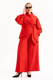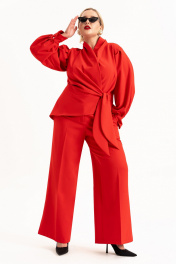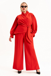 Элегантный женский костюм из ткани «марчано» стильный и универсальный наряд для различных мероприятий. Модель "двойка" сочетает в себе современные тенденции 2025-26 года с классическими акцентами. Подходит как для офиса, так и для особых случаев ( новый год, корпоративы, свадьбы или дни рождения) обеспечивая комфорт и уверенность в себе. Брюки с широкими штанинами палаццо выгодно подчеркивают женственные формы, а свободный крой обеспечивает удобство в любой ситуации. Этот костюм больших размеров идеально подойдет для прохладного времени года благодаря легкому материалу и возможности сохранить тепло. Текстура ткани добавляет изысканности и роскоши, делая образ особенно привлекательным на особых событиях. Благодаря универсальному дизайну, костюм можно успешно сочетать с различными элементами гардероба, создавая разнообразные стили от официального до повседневного. На брюках обработаны карманы в боковых швах, по талии пояс с застежкой на молнию и частично на резинке. Жакет с отрезной баской и воротником стойкой переходящей в борта. Застежка на потайную петлю и пуговицу и на завязки. Рукав длинный, втачной на манжете. По окату рукава обработаны складки. Доступен в различных размерах, в том числе и для женщин пышных форм, этот костюм позволит каждой леди подобрать идеальный вариант. Красный цвет костюма подчеркнут вашу индивидуальность и хороший вкус. Независимо от того, выберите ли вы его для офиса или вечера, этот костюм станет верным спутником в создании вашего стильного образа. Длина рукава - 62 Длина брюк - 106 Длина блузы - 67