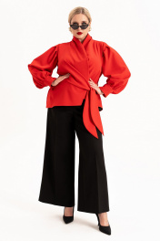 Элегантный женский костюм из ткани «марчано» стильный и универсальный наряд для различных мероприятий. Модель "двойка" сочетает в себе современные тенденции 2025-26 года с классическими акцентами. Подходит как для офиса, так и для особых случаев ( новый год, корпоративы, свадьбы или дни рождения) обеспечивая комфорт и уверенность в себе. Брюки с широкими штанинами палаццо выгодно подчеркивают женственные формы, а свободный крой обеспечивает удобство в любой ситуации. Этот костюм больших размеров идеально подойдет для прохладного времени года благодаря легкому материалу и возможности сохранить тепло. Текстура ткани добавляет изысканности и роскоши, делая образ особенно привлекательным на особых событиях. Благодаря универсальному дизайну, костюм можно успешно сочетать с различными элементами гардероба, создавая разнообразные стили от официального до повседневного. На брюках обработаны карманы в боковых швах, по талии пояс с застежкой на молнию и частично на резинке. Жакет с отрезной баской и воротником стойкой переходящей в борта. Застежка на потайную петлю и пуговицу и на завязки. Рукав длинный, втачной на манжете. По окату рукава обработаны складки. Доступен в различных размерах, в том числе и для женщин пышных форм, этот костюм позволит каждой леди подобрать идеальный вариант. Красный цвет костюма подчеркнут вашу индивидуальность и хороший вкус. Независимо от того, выберите ли вы его для офиса или вечера, этот костюм станет верным спутником в создании вашего стильного образа. Длина рукава - 62 Длина брюк - 106 Длина блузы - 67