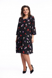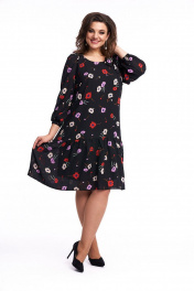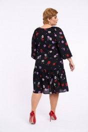 Платье женское, А – силуэта, выполнено из шифоновой ткани на трикотажной подкладке. Вырез горловины овальный. По переду расположены нагрудные вытачки. По переду и спинке имеется собранный на сборку волан низа. Рукав реглан, широкий, собран на резинку вверху и внизу. В качестве декора рукава служит лента из основной ткани, завязанная на бант. Платье может быть нарядным, а также использоваться для работы в офисе и школах, удобное, силуэт скрывает недостатки и подчёркивает достоинства фигуры, не сковывает движение. Длина платья по спинке 99 см, длина рукава от горловины 64 см. Параметры модели в 50 размере: ОГ 102 см, ОТ 104см, ОБ 111 см; параметры в 52 размере ОГ 106см, ОТ 108 см, ОБ 115см; параметры в 54 размере ОГ 110см, ОТ 112см, ОБ 119см