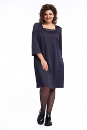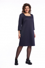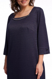 Платье женское полуприлегающего силуэта, чуть расклешённое к низу. По переду платья расположены нагрудные вытачки. Спинка со средним швом, в котором расположена застёжка на потайную тесьму-молнию и талиевыми вытачками. В боковых швах расположены карманы. Вырез горловины трапециевидный, углы которого формирует кокетки переда. Рукав втачной с притачной манжетой, по середине которой выполнен разрез, в качестве декора разреза рукава служит пуговица на ножке. Платье может быть нарядным, а также использоваться для работы в офисе и школах, удобное, силуэт скрывает недостатки и подчёркивает достоинства фигуры, не сковывает движение. Длина платья по спинке 96 см, длина рукава 49 см.