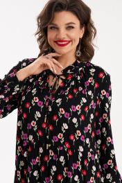 Черное свободное платье с оборками, разрезом и сборкой Almirastyle 265