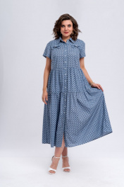 Платье женское прямого силуэта, расклешенное к низу. Платье отрезное по линии талии. Нижняя часть платья состоит из двух частей, собранных на сборку. В верхней части переда расположены нагрудные вытачки и горизонтальная кокетка, в шве притачивания которой расположены клапаны в виде бантиков. В верхней части спинки расположена горизонтальная кокетка, в шве притачивания которой расположены односторонние складки. Воротник – стояче-отложной с отрезной стойкой. Рукав втачной, короткий. Застежка платья выполнена в виде притачной планки по переду, которая застегивается на петли-пуговицы. В боковых швах расположены карманы. Нижняя часть платья на подкладке. Платье очень женственное, удобное, не сковывает движения, может подойти на все случаи в жизни, как для вечерних прогулок по городу, так и для работы. Длина платья по спинке 129 см, длина рукава 18 см.