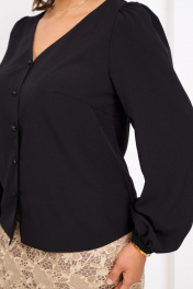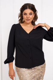 Комплект женский состоит из блузки и юбки. Блузка полуприлегающего силуэта с фигурным низом. Горловина V -образной формы, центральная застежка на петли и пугоывицы. Рукав втачной, длинный со сборкой по окату. По низу рукава сборка на резинке. Юбка заужена к низу, на подкладке. На заднем полотнище со среднему шву вверху потайная молния, внизу - разрез. Длина блузки - 62 см, длина рукава - 66 см.длина юбки 74 см. 50 размер: ОГ- 106 см, ОТ - 102 см,ОТ юбки 90 см, ОБ юбки - 110см. ОБ - 110см. 52 размер: ОГ - 110см, ОТ- 106 см, ОБ- 114 см. Т юбки 94 см, ОБ юбки - 114см; 54 размер: ОГ - 114 см, ОТ - 110 см, ОБ - 118 см.ОТ юбки 98 см, ОБ юбки - 118см.