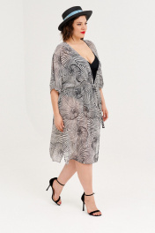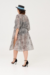 Летящее платье-туника смотрится просто потрясающе. По боковым швам высокие разрезы. По переду и спинке кулиска и пояс. Легкая полупрозрачная тканьэффектро подчеркивает достоинства фигуры. Параметры на 50-54 размеры: ОГ 172см, ОТ172см, ОБ 172см, длина 109см. ! Подойдет на 46 - 56 размеры.