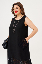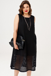Платье свободного силуэта из льна с подрезами и накладными карманами Almirastyle 375