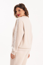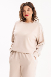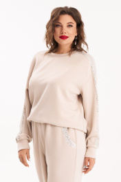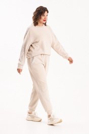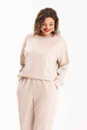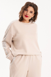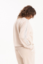 Эффектный, стильный комплект состоит из джемпера и брюк и выполнен из трикотажного полотна с отделкой из ткани с пайетками. Джемпер свободного силуэта со спущенной линией плеча. По низу рукава притачные манжеты. По низу джемпера притачной пояс. Брюки прямые с притачной манжетой внизу. По передним половинкам - внутренние карманы с отделочными планками. Притачной пояс на линии талии, резинка вкруговую. Комплект подходит для девочек, девушек и женщин всех возрастов. В 50 размере: ОГ 120 см, ОБ 104 см, длина 60 см, длина рукава от горловины 74 см, ширина рукава 42 см. ОТ 68-112 см, длина брюк 100 см. В 52 размере: ОГ 124 см, ОБ 108 см, длина 60 см, длина рукава от горловины 74 см, ширина рукава 42 см. ОТ 70-116 см, длина брюк 100 см. В 54 размере: ОГ 128 см, ОБ 112 см, длина 60 см, длина рукава от горловины 74 см, ширина рукава 42 см. ОТ 72-120 см, длина брюк 100 см.