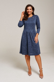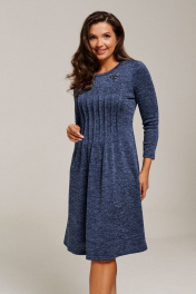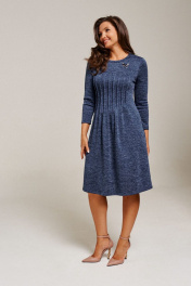 Платье с отрезной кокеткой и бантовыми складками по переду. Длина изделия 46,48р.-101 см, 50р.-103 см, 52,54-105 см. Рукав втачной длиной 55 см. Вырез горловины круглый. Спинка со средним швом. Декоративная брошь в комплекте. Внимание! Брошь может отличаться от фото