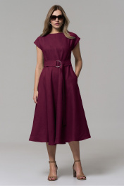 Платье льняное полуприлегающего силуэта, длиной 120 см (в 46размере). Модель со слегка спущенной линией плеча, длина плеча 17 см от горловины. В боковых швах расположены карманы. Пояс из основной ткани с пряжкой подчеркивает линию талии и формирует утонченный силуэт.