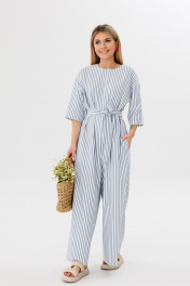 Комбинезон с спущенным плечом и поясом из вискозы Ambera Style 1075w полоска