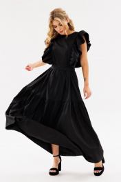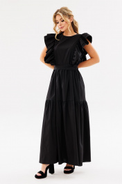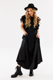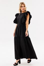 Черное летнее платье свободного силуэта с рюшами Ambera Style 1096-1 черный