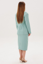 Костюм двухпредметный.Жакет полуприлегающего силуэта обладает спущенными плечами и V-образным вырезом, что добавляет образу изысканности. Функциональные детали включают подкладку, втачные длинные рукава и действующие карманы в рельефах по переду. Застежка на петлю-пуговицу . Спинка жакета оформлена средним швом и рельефами для идеальной посадки.Юбка-карандаш прилегающего силуэта.Задняя часть юбки со средним швом.В среднем шве застежка на потайную тесьму молнию.По низу разрез.
