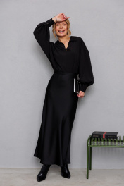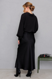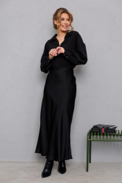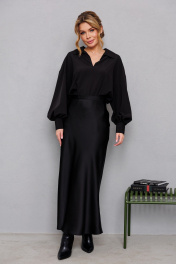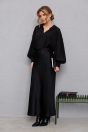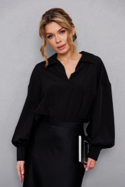 Объемная оверсайз блузка с широкими рукавами и глубоким вырезом AMORI 6456 чёрный